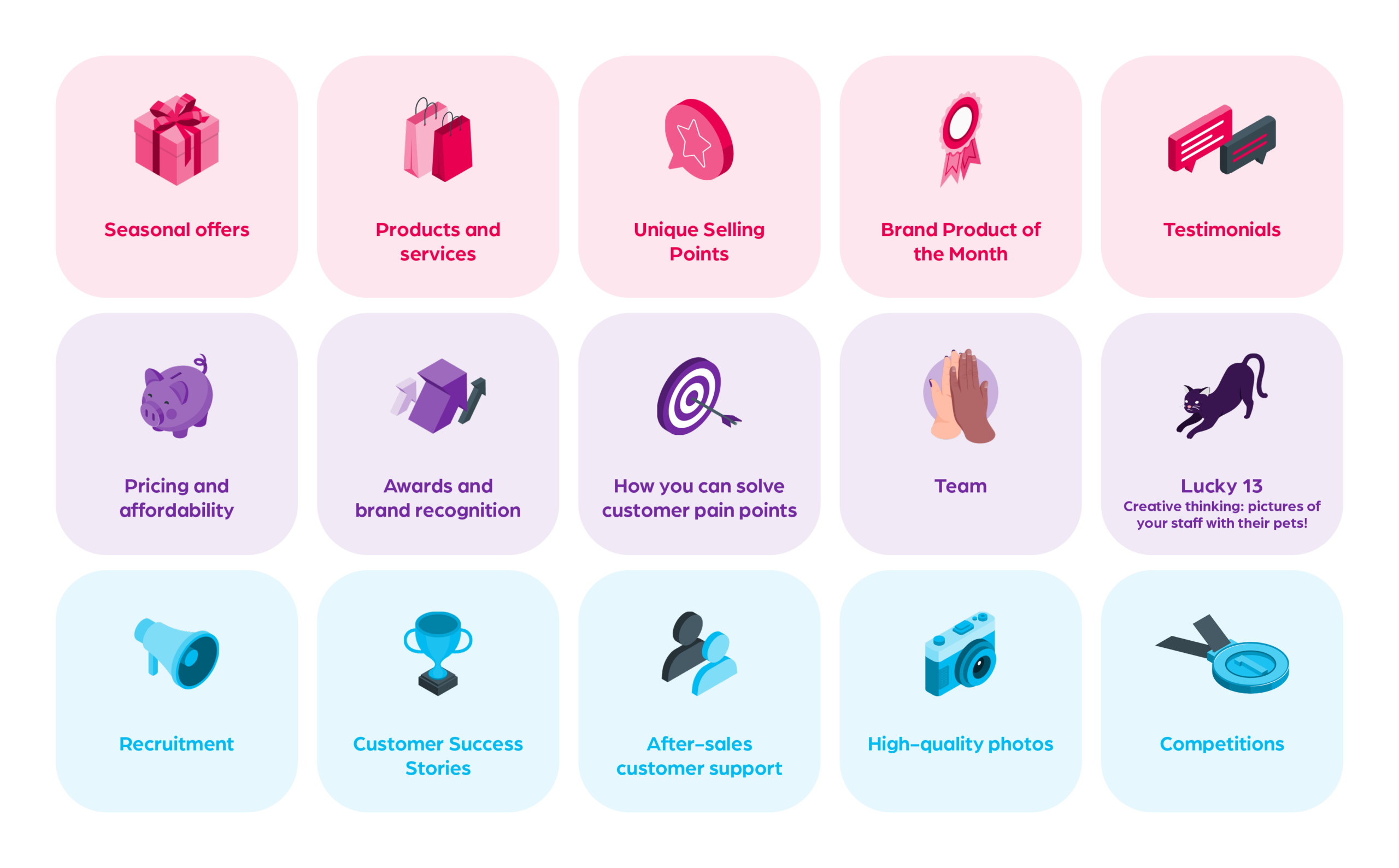 Yes, we recommend that you change your message every four weeks to maximize the opportunity. Your range of messaging could include: Seasonal promotions, Services, Product focus, Community and team content, Pain point messages, Awards and credibility, Recruitment and much more!